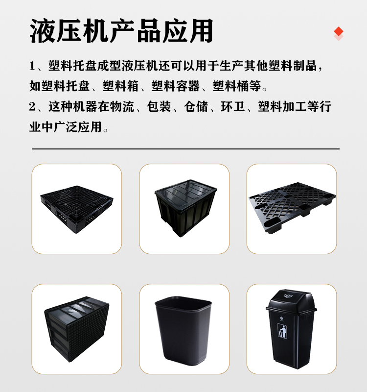 塑料托盤成型液壓機(jī)在物流、倉儲(chǔ)、包裝等行業(yè)中有著廣泛的應(yīng)用。塑料托盤是一種常用的物流包裝工具,可以用于存放、運(yùn)輸和堆放貨物,提高物流效率,降低勞動(dòng)強(qiáng)度。塑料托盤成型液壓機(jī)生產(chǎn)的塑料托盤具有質(zhì)量穩(wěn)定、耐用、環(huán)保等優(yōu)點(diǎn),能夠滿足不同行業(yè)的需求。在電子、汽車、食品、化工等行業(yè)中,塑料托盤都是必不可少的物流包裝工具,因此塑料托盤成型液壓機(jī)在這些行業(yè)中具有重要的應(yīng)用價(jià)值。